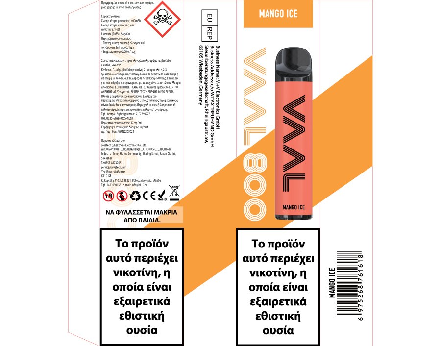 Vaal 800 17mg 2ml Mango Ice | Disposable προγεμισμένο με υγρό αναπλήρωσης και απόδοση έως 800 εισπνοές