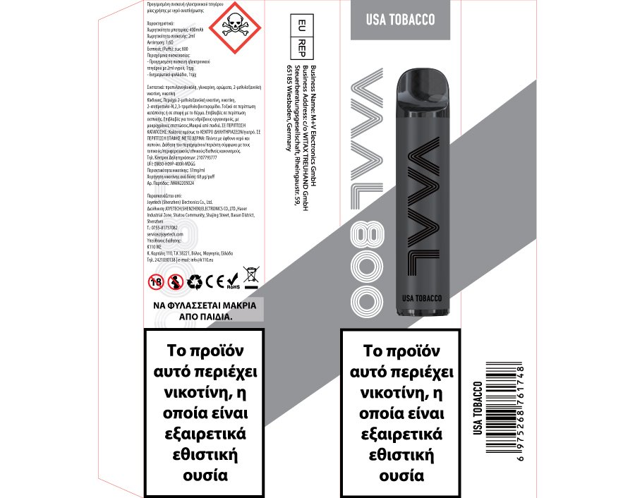 Vaal 800 17mg 2ml USA Tobacco | Disposable προγεμισμένο με υγρό αναπλήρωσης και απόδοση έως 800 εισπνοές