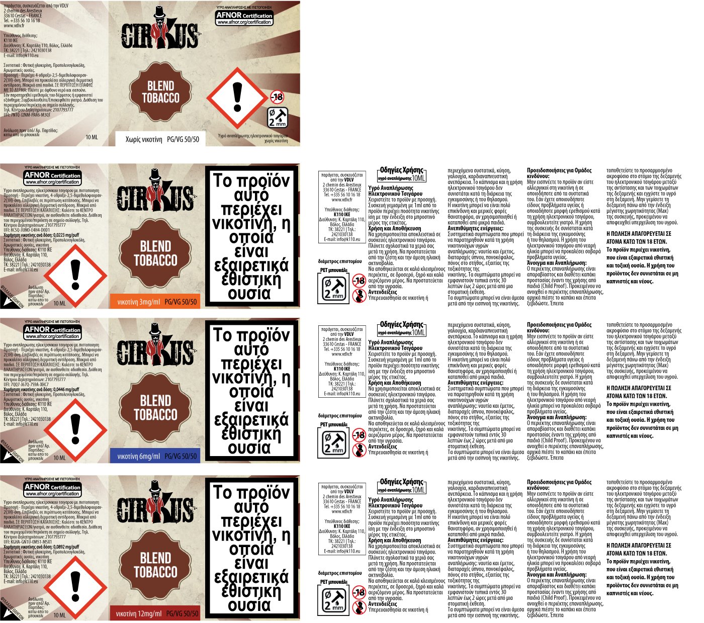 Τα υγρά αναπλήρωσης και τα αρώματα Cirkus βασίζονται σε φυσικά και τεχνητά αρώματα τροφίμων.