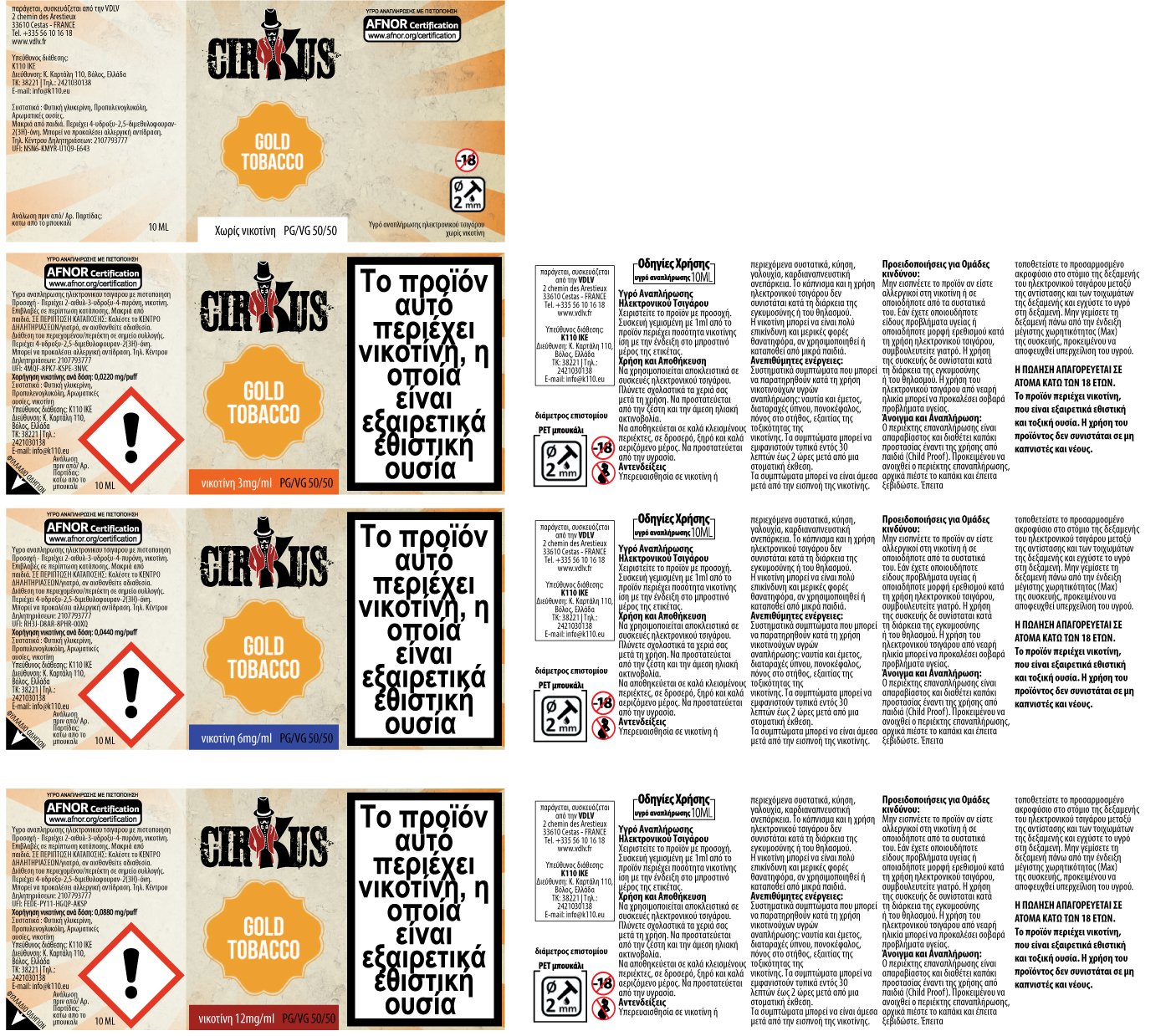 Τα υγρά αναπλήρωσης και τα αρώματα Cirkus βασίζονται σε φυσικά και τεχνητά αρώματα τροφίμων.