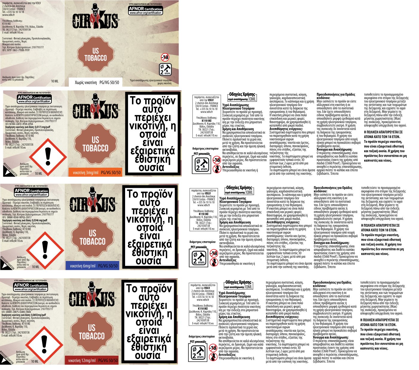Τα υγρά αναπλήρωσης και τα αρώματα Cirkus βασίζονται σε φυσικά και τεχνητά αρώματα τροφίμων.