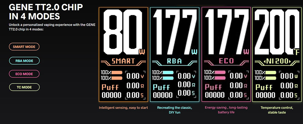 4 λειτουργίες για να ξεκλειδώσετε την εξατομικευμένη εμπειρία ατμίσματος σας.