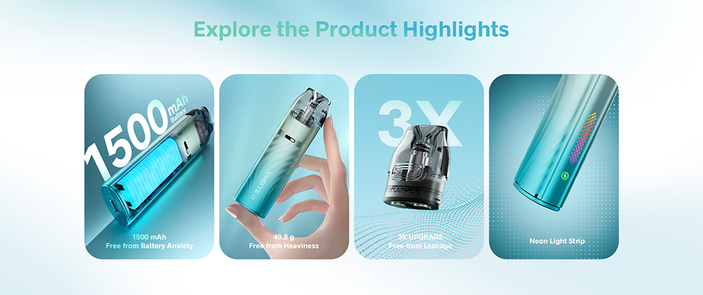 Το VMATE i3 συνδυάζει το εξαιρετικά ελαφρύ σώμα των 49,8 g με μια μεγάλη μπαταρία 1500 mAh, προσφέροντας ταυτόχρονα φορητότητα και διάρκεια. Η αναβαθμισμένη 3X VMATE Top Fill Cartridge προσφέρει τριπλή βελτίωση σε αποτροπή διαρροών, απόδοση γεύσης και ανθεκτικότητα. Σε συνδυασμό με γρήγορη φόρτιση 5V/2A και Neon φως ένδειξης, προσφέρει μια εμπειρία χωρίς έγνοιες σε χρήστες αρχικού επιπέδου που εκτιμούν την οικονομική αποδοτικότητα και την ευκολία.