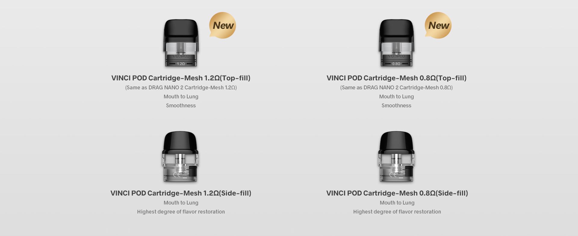 Το VINCI POD 1.2Ω αναβαθμίζεται για άλλη μια φορά προσφέροντάς νέα επίπεδα γεύσης. Σε σύγκριση με την προηγούμενη έκδοση, η γεύση είναι πιο λεπτή και χορταστική. Ταυτόχρονα υιοθετεί τη νεότερη τεχνολογία πλέγματος που αναπτύχθηκε από τη VOOPOO Laboratory για τη μεγιστοποίηση του ατμοποιητικού αποτελέσματος της αντίστασης ενώ οδηγεί τη γεύση στα άκρα.