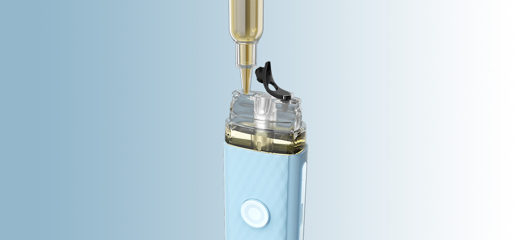 Δεν χρειάζεται πλέον να τραβάτε την δεξαμενή. Απλώς βγάλτε το επιστόμιο, τραβήξτε το βύσμα σιλικόνης, γεμίστε με το υγρό αναπλήρωσης και συνδέστε το ξανά.