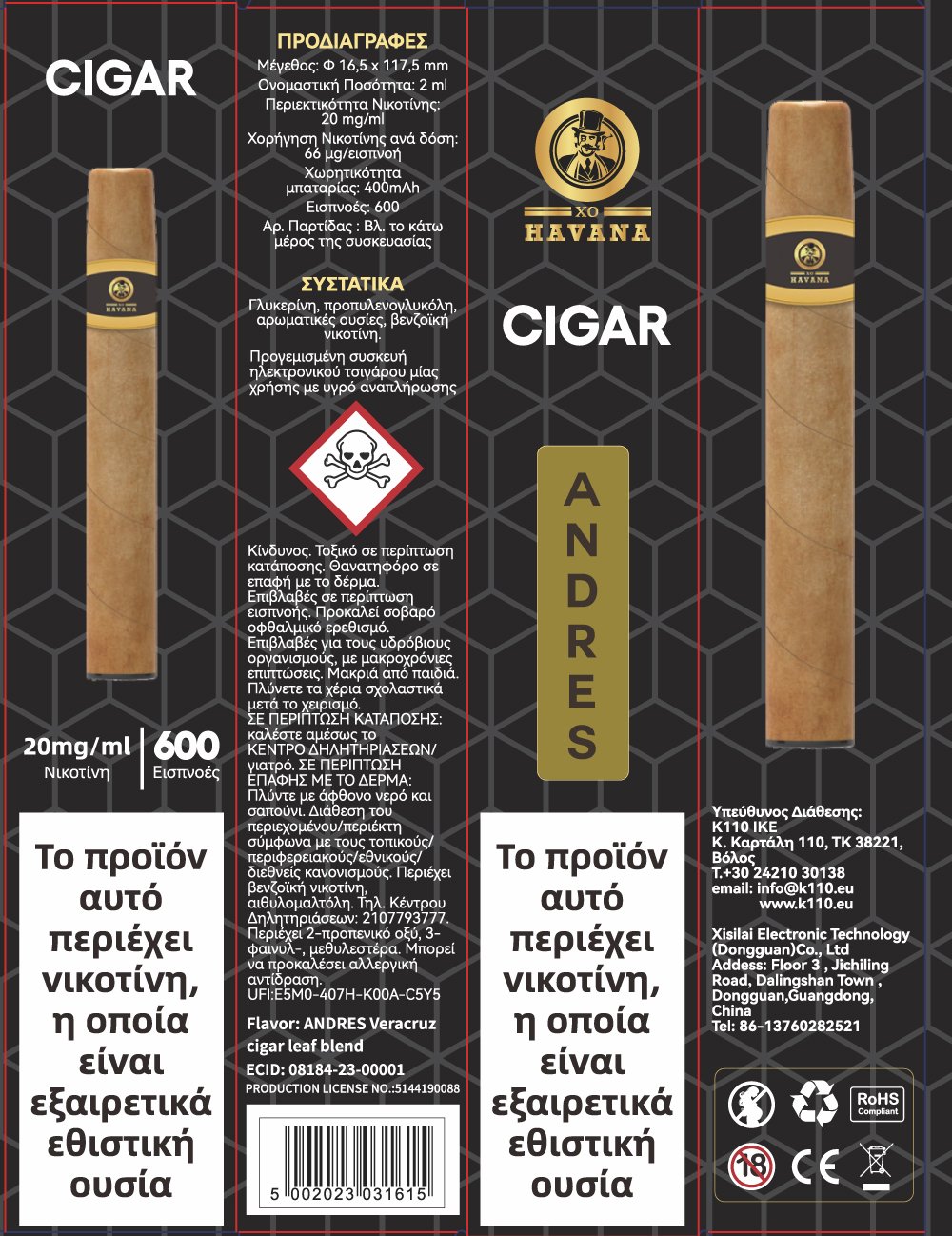 Tο πρώτο premium ηλεκτρονικό πούρο μίας χρήσης σε σχεδιασμό της Γαλλικής XO Havana και σε αποκλειστική διάθεση για την Ελληνική αγορά από την Κ110 είναι εδώ και θα σας εντυπωσιάσει με τις αποτυπώσεις των καπνικών αρωμάτων!