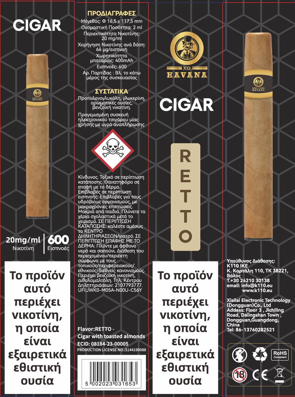 Tο πρώτο premium ηλεκτρονικό πούρο μίας χρήσης σε σχεδιασμό της Γαλλικής XO Havana και σε αποκλειστική διάθεση για την Ελληνική αγορά από την Κ110 είναι εδώ και θα σας εντυπωσιάσει με τις αποτυπώσεις των καπνικών αρωμάτων!